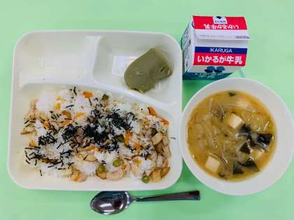 まっ茶ういろうは、白いんげん豆のペーストと上新粉、まっ茶、砂糖、水を混ぜ合わせて蒸したデザートです。1年生は初めて見るういろうに「これ何?」という感じでしたが、食べてみるとおいしかったようですよ。
