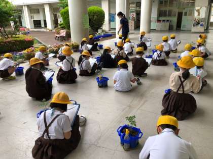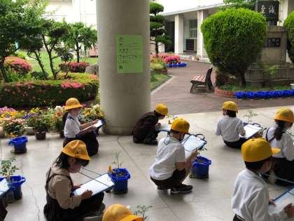 2年生は、先週植えたミニトマトの観察です。