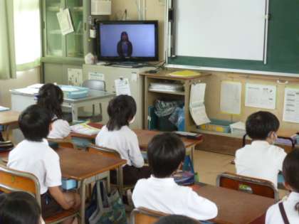 写真上)およそ1か月ぶりの全校朝会です。みんないい姿勢で、「心のスイッチ」をしっかりと入れて、テレビ画面に集中していました。