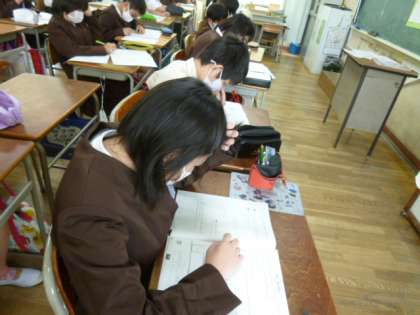 写真下)6年生の教室が静寂に包まれています。27日に迫った全国学力・学習状況調査に向け、過去問に取り組んでいます。とにかく最後まであきらめず、がんばれ!がんばれ!