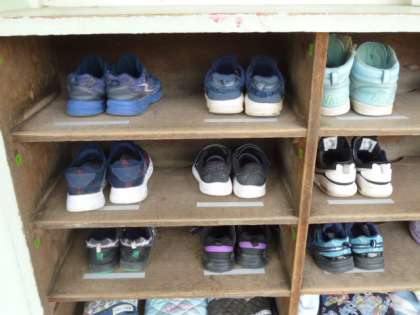 教室前の下駄箱です。靴のかかとがきれいに揃っていますね。