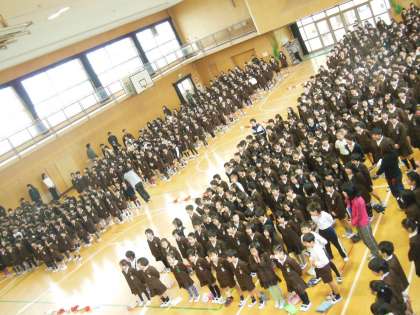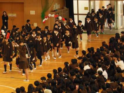 6年生の卒業を祝って、各学年からメダルや手紙、歌などのプレゼントが贈られました。