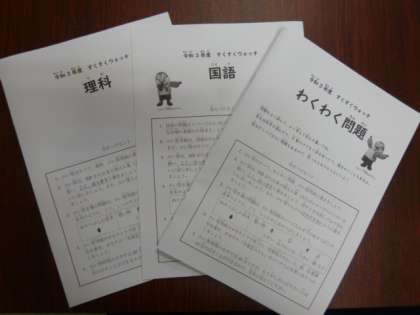 5年生は国語、算数、理科、わくわく問題に、6年生はわくわく問題に挑戦しました。「わくわく問題」は、教科横断型のテストです。自分の考えを、文章で書いたり、図で表したりと、答えがひとつではない問題もあります。