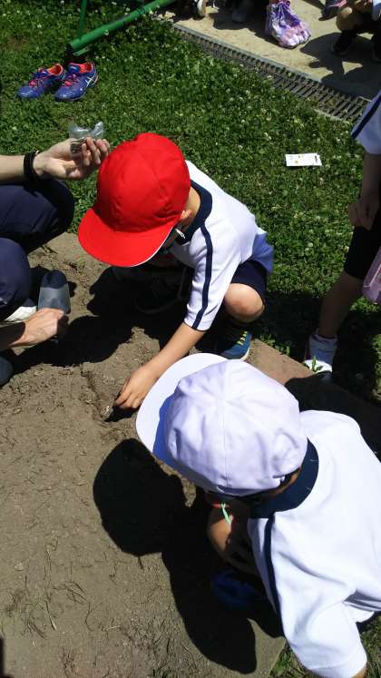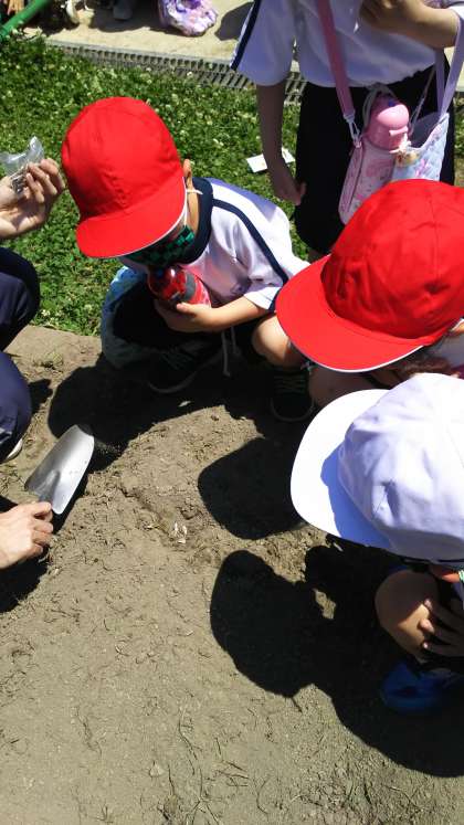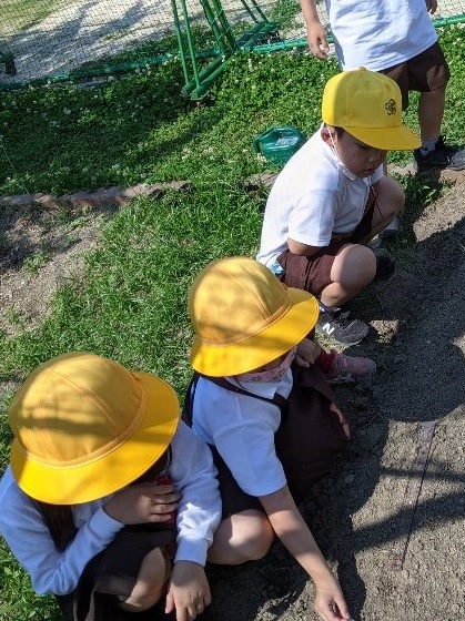 生活科の学習でヒマワリの種を植えました。指で2〜3cmの穴をあけ、その穴に種を入れていきます。優しく土をかぶせる様子や「どのくらいお水あげたらいいのかな。」と話す言葉に子どもたちのひまわりに対する思いを感じました。子どもたちの願いが通じ、ヒマワリが大きく育つといいですね。