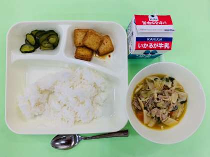 中華煮は、豚肉をメインにキャベツ、たけのこ、たまねぎ、にんじんなどを使用した、中華風の煮ものです。最後に、にらを入れることで、彩りもよくなります。