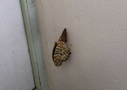 保健室前の靴箱でサナギになっていた蝶が、今まさに、羽化しているところです!