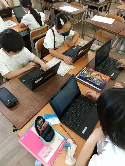 今日の国語科の授業では、自分が担当する都道府県のことを記事にするために、タブレットを使って情報を集めました。