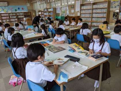 図書の時間に3分間読書に取り組みました。あらかじめ図書館支援員さんが選んでくださった本を3分間、集中して読んでいきます。読み終えた後は、「この本は○○が出てきて面白かった。」「これはこんな話だった。」と感想が聞こえてきます。自分の興味のある本だけでなく、興味を広げ、たくさんの本に出会って、お話の世界を広げてほしいと思います。