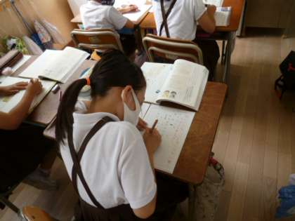 「大事なことだけ短く書く」「話の順番通りに書く」「1.2.3と番号をつけて書く」子どもたちからどんどん意見が出ます。友だちの意見を聞いて感じたことを発表し、学級のなかで思考が広がり、深まっていきます。