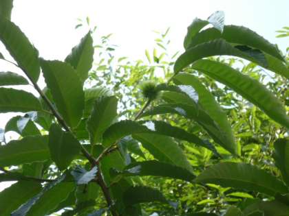 ↑ 約1か月前のHPで栗の花を紹介しました。花が終わり、今はこんな風に、イガができています。