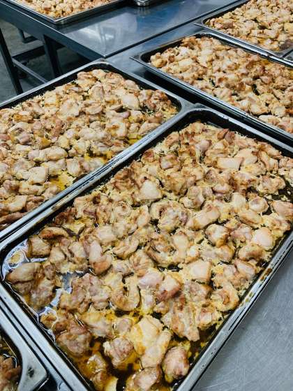 右の写真は、鶏肉を酒、塩、こい口しょうゆ、マヨネーズで下味をつけて焼いたものです。しっかりした味つけだったので、今日はごはんの残食が少なかったですよ!