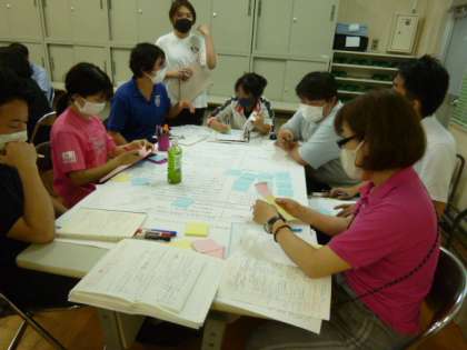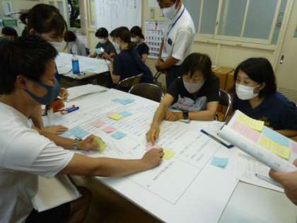 研究授業後の放課後には、全員で今日の授業を振り返る、研究討議会を行いました。よりよい授業づくりに向け、白熱した議論が交わされています。