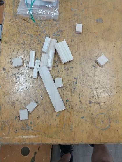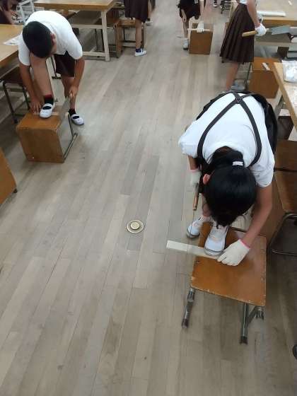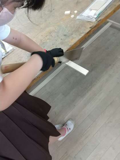 図画工作科では、のこぎりを使って木を切っています。初めてののこぎりで難しそうにしていましたが、慣れてくるとどんどん切る時間も短くなり、切り方も上手になっていました。切った後は、紙やすりで切り口を研磨しました。