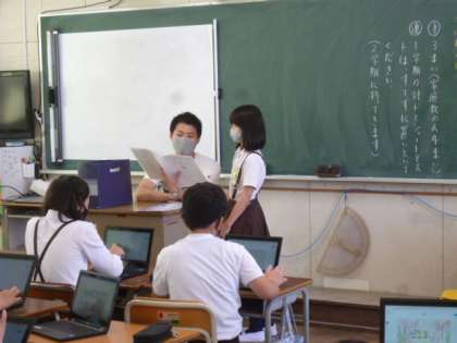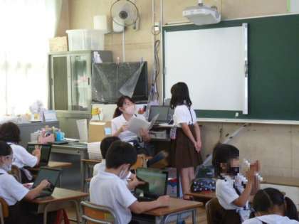 他の児童が自学や読書、プログラミングなどに集中している間に、一人ひとりへのメッセージとともに渡している学級がほとんどでした。短い時間でも、担任から1対1で褒めてもらえる時間をもつことができたようです。
