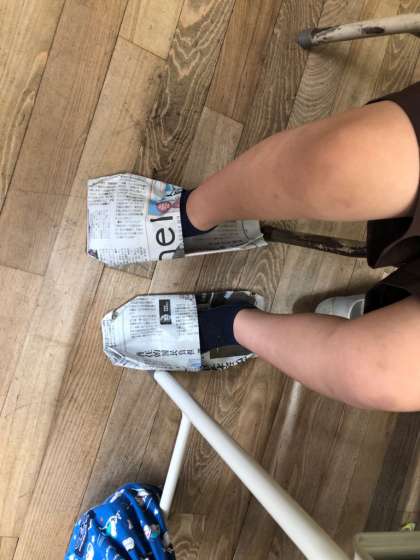 なかなか難しそうですが、非常時に役に立ちそうな丈夫なスリッパができました。