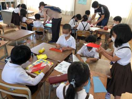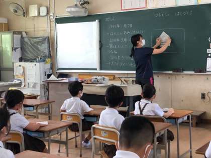 2年生は、避難所で役に立ちそうな箱づくりをしています。