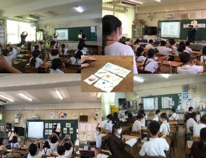 3・4年生の外国語活動と5・6年生の外国語の授業の様子を、教育委員会の英語イノベーショングループより見に来ていただきました。今日の学習は、