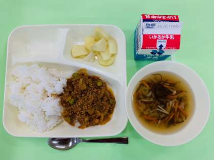 これに、沖縄県産の冷凍もずくを使用したスープと、塩だけで味つけした焼きじゃがの組み合わせは、子ども達に大好評でした。