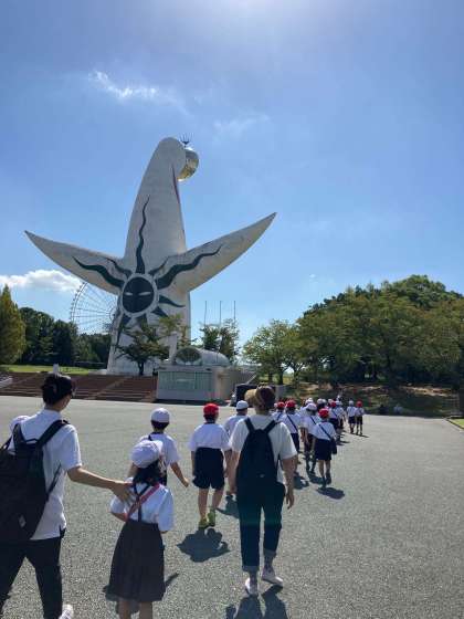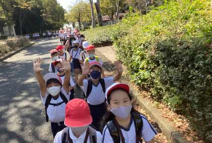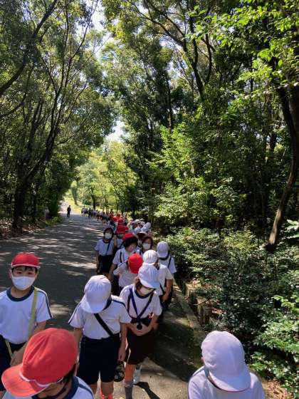 お天気に恵まれ、絶好の遠足日和でした。気温も高かったので、たくさん歩いた子どもたちは汗びっしょりでしたが、芝生で元気に遊びました!
