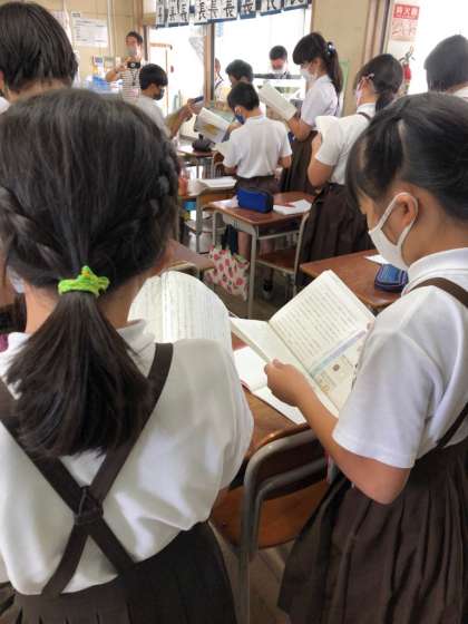 5年生の国語科の研究授業の様子です。和菓子と他の文化とのかかわりについて述べている筆者が、資料として写真を用いていることの効果について考えました。