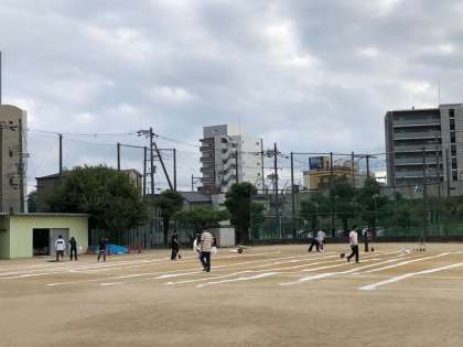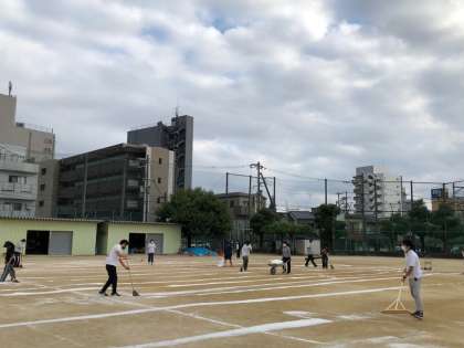 スポーツ大会を来週末に控え、職員作業でにがりまきを行いました。