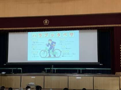今日は東淀川区役所の地域課の方に来ていただき、自転車安全運転教室を行いました。