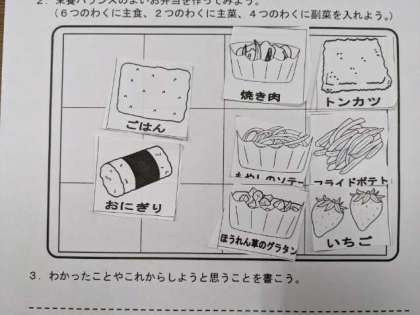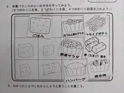「これ好きだから入れよう!」「きらいやけど頑張って食べる」「栄養バランスがいいようにした」など子どもたちはいろいろと工夫していました。