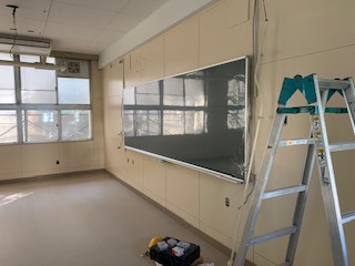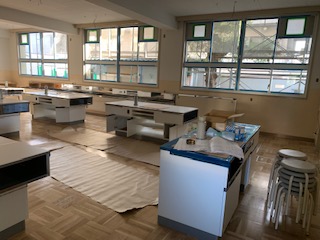 今日のぞかせてもらうと、家庭科室に新しい調理台が入っていました。真新しい家庭科室で、調理実習をするのが楽しみですね。
