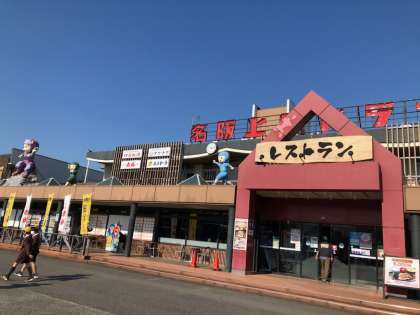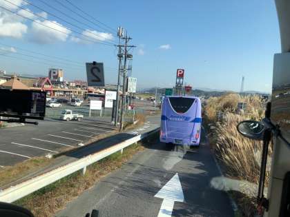 ほぼ時間通り、忍者パーキングエリアでトイレ休憩です。真っ青な青空です。