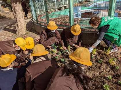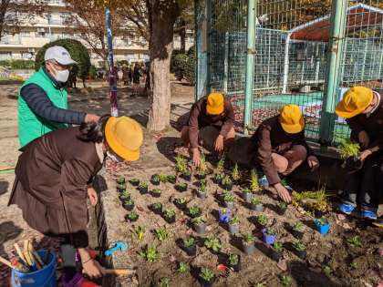 掃除以外にも花壇に花の苗を植えるお手伝いもしました。素敵な花が咲いて、公園を彩るのが楽しみですね。
