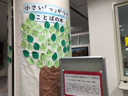 昨年度の菅原小学校1年生が取り組んだ「ことばの木」が掲示されています。友だちと一緒にことば集めをするなど、楽しみながら書く力をぐんぐん伸ばしていきましたね。