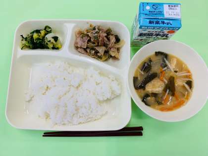 ごまだれ焼きは、ねりごまと砂糖、みりん、こいくちしょうゆで下味をつけた豚肉にピーマン、たまねぎを合わせ、さらにいりごまをかけて焼いています。ごまの風味たっぷりの主菜でした。