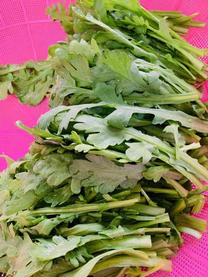 そして、おひたしには、旬のきくなが使われていました。きくなは「春菊(しゅんぎく)」ともいい、葉や花の形が菊に似ています。ビタミン類やカルシウムが豊富な食品です。