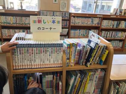 3学期が始まり、図書室には新しく入った本がたくさん並べられています。子どもたちはさっそく、興味津々で書棚に手を伸ばしていました。