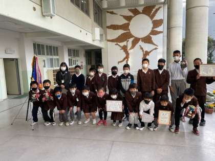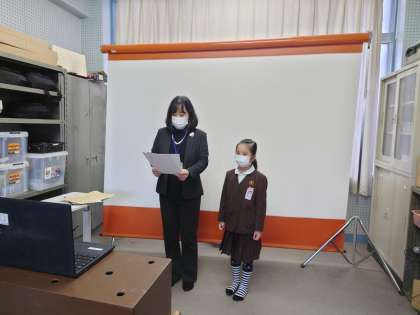 児童朝会で、消防図画、読書感想文(6名)、子ども会ソフトボールの表彰を行いました。ソフトボールの4年生以下の部では、近畿大会優勝の立派な優勝旗もありました。