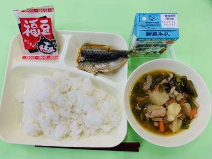 今日は、節分の行事献立でした。節分の日には、病気や悪いことを追い払うために、豆をまいたり、いわしを食べたりする習慣があります。