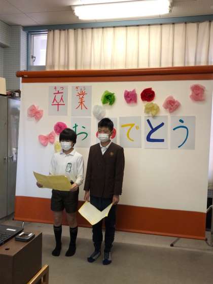 運営委員会が企画して、卒業を祝う会を開催しました。全校が集合することは今年もできませんでしたが、感謝の気持ちのこもった、心温まる会になりました。