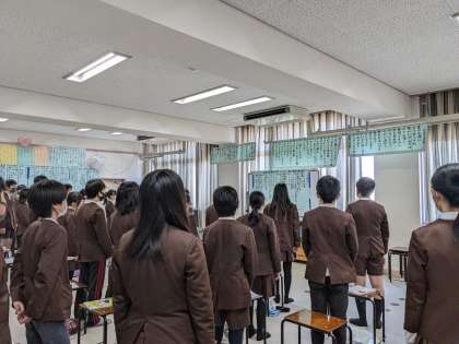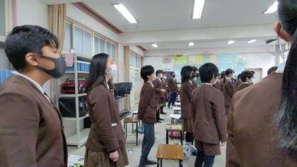 音楽の授業の様子です。最後の授業ということで、今まで習ってきた曲を歌いました。授業で習ったことを中学校でも活かしてくださいね。