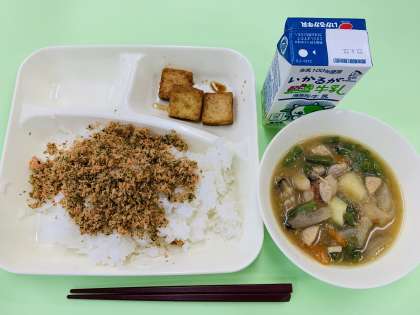 そして、紅ざけそぼろは手作りのふりかけです。紅ざけフレークといりごまや青のりが入り、カルシウムたっぷりのものになっています。