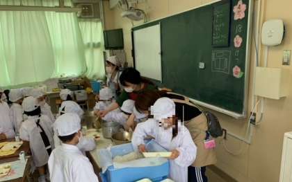 そして、熱い大きいおかずやごはんの盛り付けはとても難しいですが、先生方がサポートしながら、上手に盛り付けることができました。