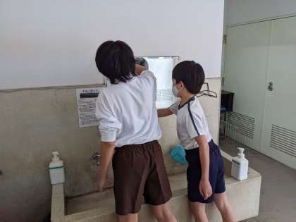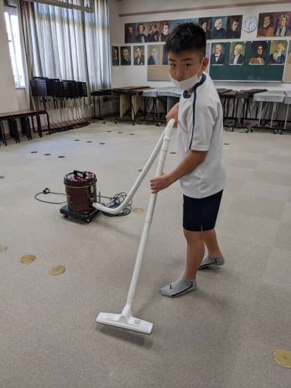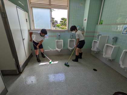 掃除の時間の様子です。決められた場所を丁寧に掃除しています。みんなで使う学校をきれいにすると気持ちがとてもいいですね。