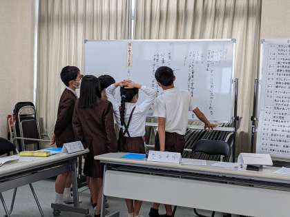 運動委員会と運営委員会です。みんなに呼びかけるポスターを作ったり、学校のめあてを話し合ったりしています。これからもより良い学校を目指して頑張ってください。