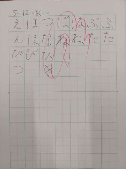 国語科の学習で、初めてノートを書きました。先生が書いた字を見ながら、一生懸命写していました。