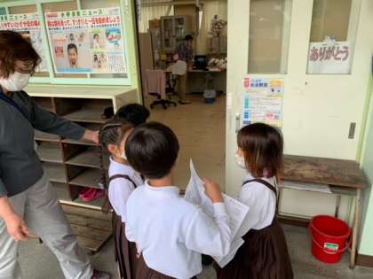 2年生が1年生に学校中のいろいろな場所を案内しました。