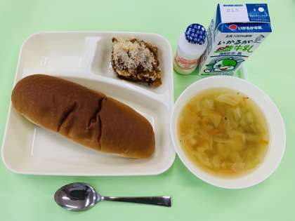 グラタンは、牛・豚ひき肉やじゃがいもが入ったトマトベースのグラタンでした。濃厚な味わいで子ども達に大好評でした。給食では、ミートグラタンの他にいろいろな種類のグラタンが登場します。楽しみにしていてくださいね。