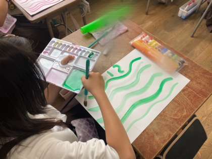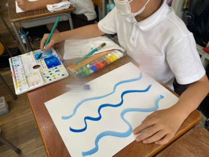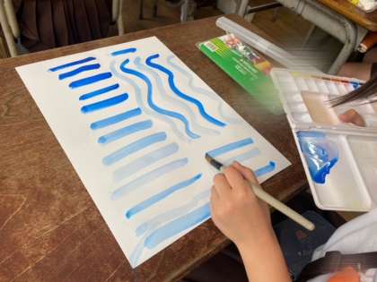 絵の具を使って、グラデーションや筆遣いの練習中。