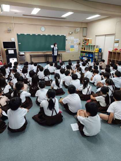 明日は初めての遠足なので、1年生みんなで集まって、持ち物の確認や電車の乗り方など、色々なことをしおりを見ながら確認しました。明日の遠足が楽しみです♪