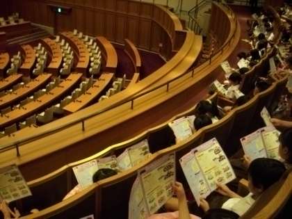 市役所では、大阪市議会の会場を見せていただきました。すごく立派な議場で、大阪市議会のお仕事について、子どもたちは熱心にお話を聞いていました。