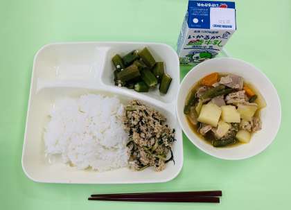 オクラの梅風味は、旬のオクラを蒸し、梅肉、砂糖、酢、うす口しょうゆを合わせたタレをかけ、和えています。梅の風味で、さっぱりと食べることができます。また、オクラのねばねばは、腸の働きを助ける食物繊維が豊富に含まれています。暑い夏におすすめの食材です。