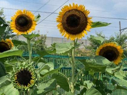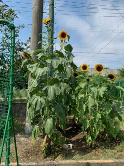 そんな暑さの中ですが、校庭にある学習園ではひまわりが力強く咲いています。
